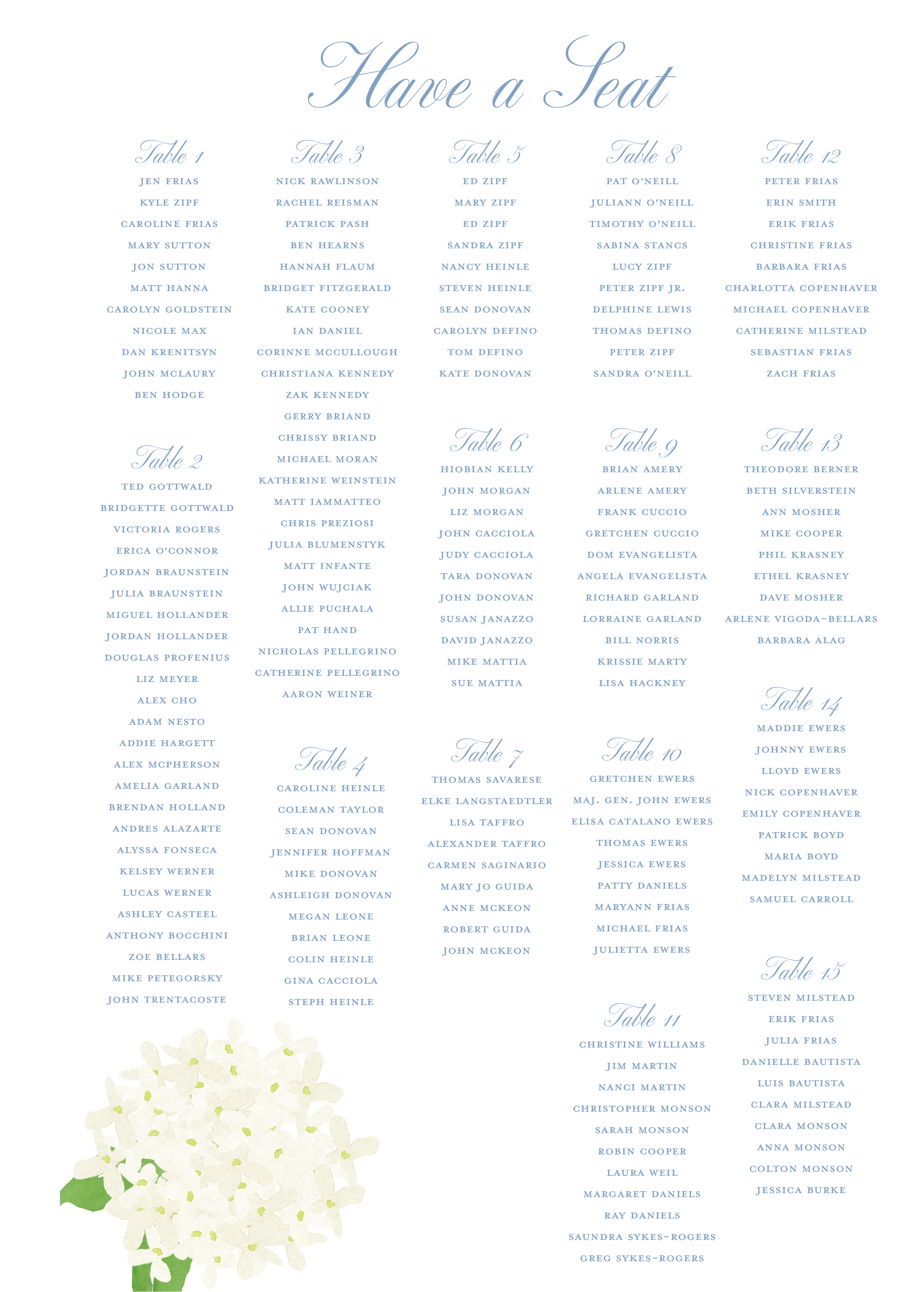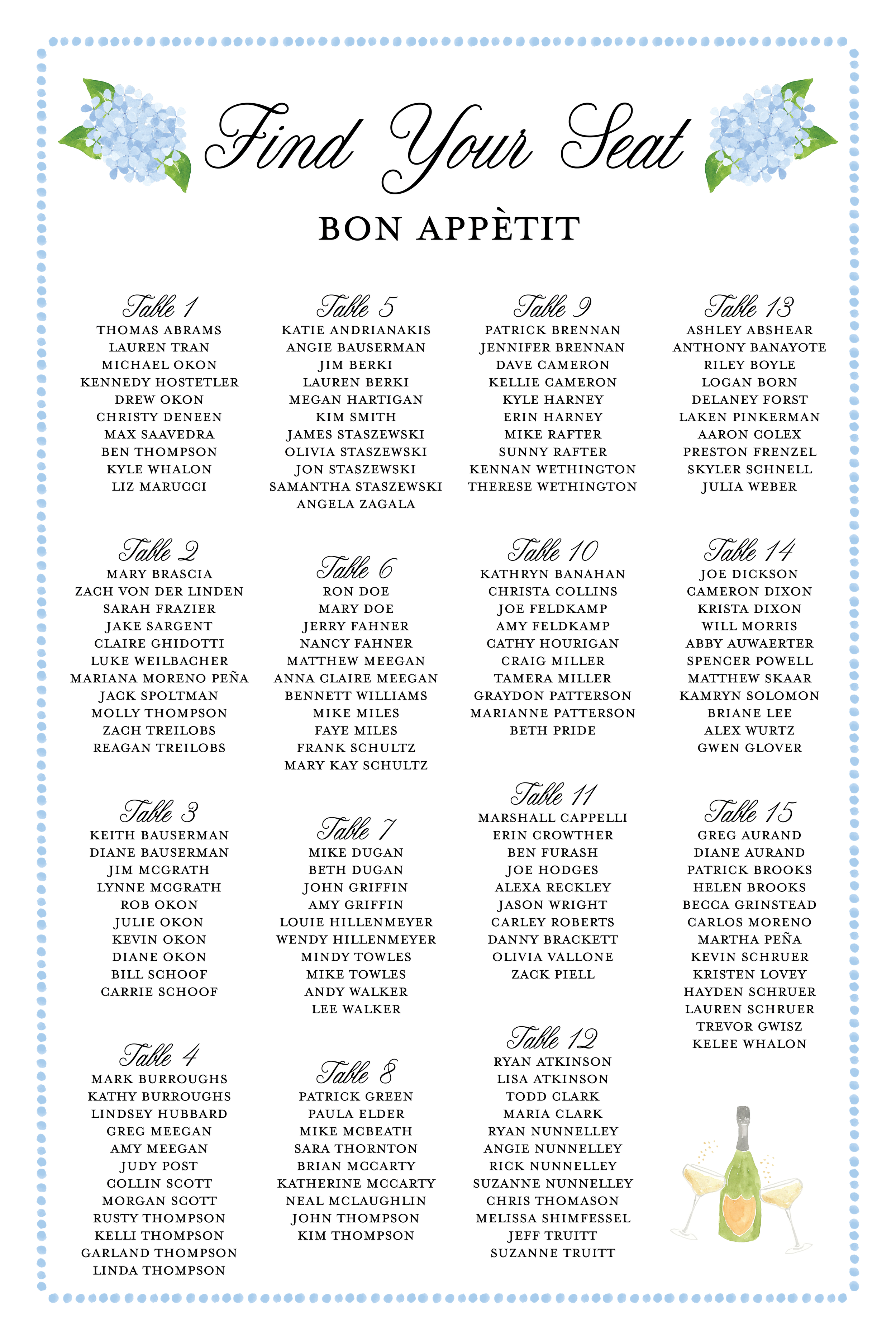 Seating Charts | Escort Cards | Place Cards | Table Numbers